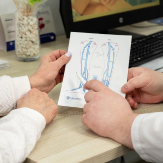 Мы применяем все современные методы лечения варикоза. В нашем арсенале лазерного лечения варикоза (ЭВЛК), удаление венозной сетки и сосудистых звездочек (склеротерапия), лечение трофических язв, подбор компрессионного трикотажа и другие медицинские услуги.